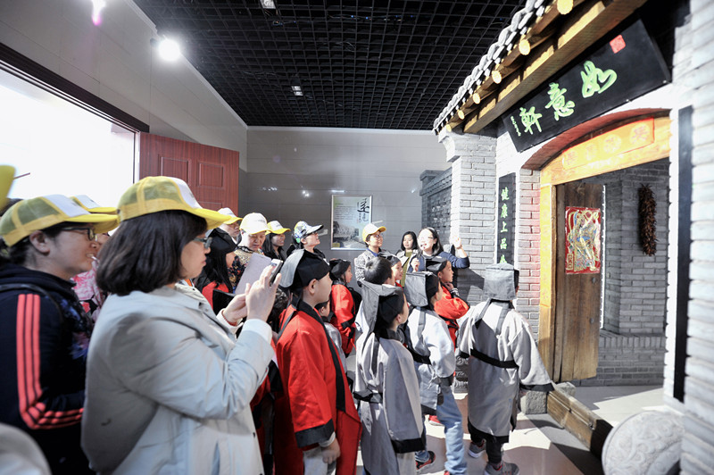 在展廳最有特色的一處工藝品展示前,小朋友們詳細(xì)了解了古法豆芽生產(chǎn)流程:打井水,揀豆子,淘洗,室內(nèi)培育,采摘豆芽,晾曬容器,集市買賣。