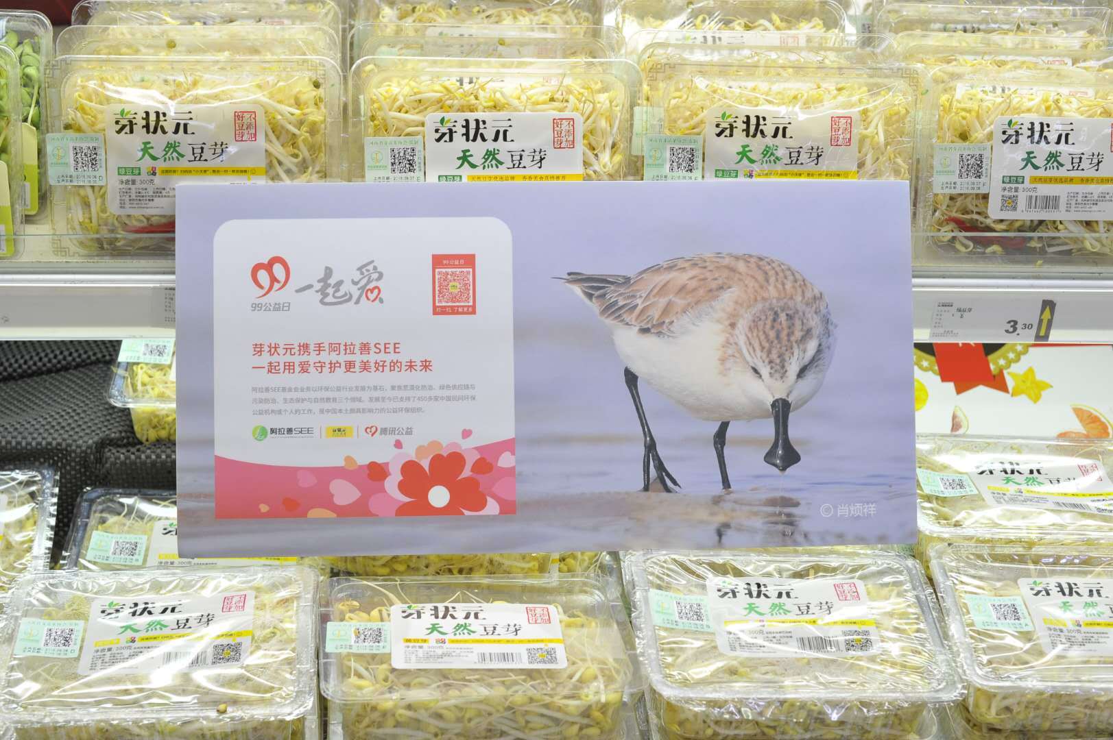 從“助力衛藍俠,守護碧水藍天”到“守護瀕危水鳥及棲息地”,自加入阿拉善SEE之后,芽狀元天然豆芽連續參加兩屆99公益日活動,充分利用線下商超渠道,廣泛發動消費者參與愛心捐款,宣傳環保項目,宣傳公益理念和社會正能量,轟動全城。