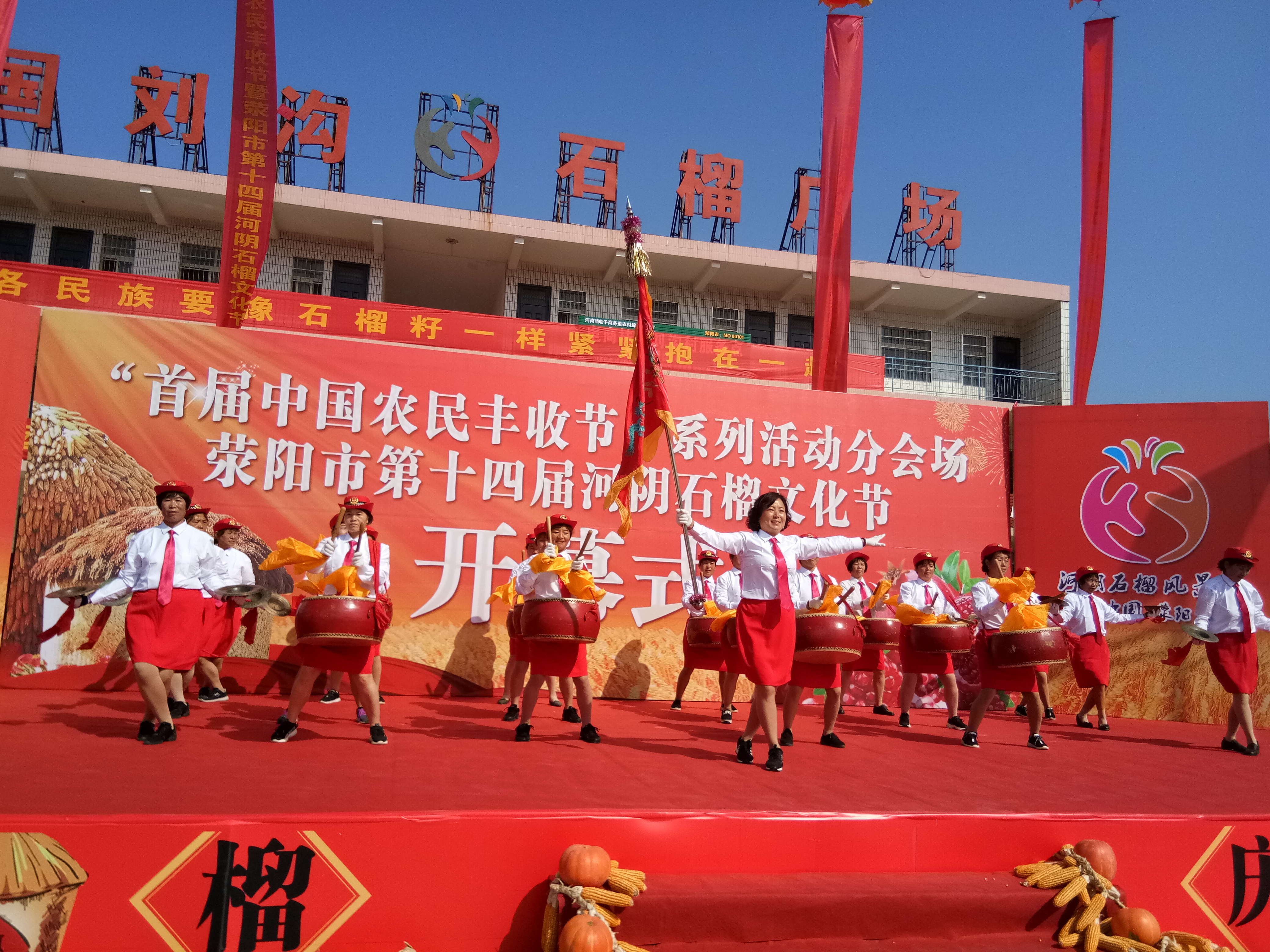 不只是新鄭。在滎陽市高村鄉劉溝村石榴廣場,鑼鼓喧天,燈籠高掛。“首屆中國農民豐收節”系列活動——滎陽市第十四屆河陰石榴文化節,盛裝開幕。