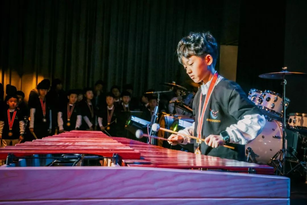 當天下午,理想國聚匯禮堂迎來這場新年音樂會。幾十名孩子先后演奏了《98K》《沙漠駱駝》《魯邦三世》《灌籃高手》《龍卷風》《西班牙斗牛曲》等大熱曲目。跌宕起伏的節(jié)奏,時而喧囂吶喊、時而珠落玉盤,讓聚匯禮堂變成了音樂的海洋。