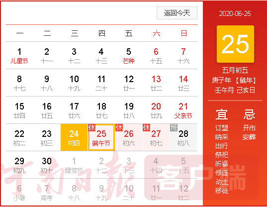今年端午節(jié)具體放假時間是6月25日到6月27日放假三天。6月28日上班,補(bǔ)6月26日的調(diào)休。