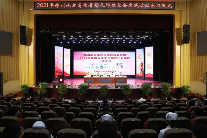 6月2日下午,2021年鄭州地方高校暑期大學(xué)生反邪教社會實(shí)踐活動在鄭州科技學(xué)院啟動,500余名大學(xué)生反邪教志愿者誓師出征。鄭州市公安局、鄭州市教育局、鄭州市反邪教協(xié)會、鄭州地方高校反邪教協(xié)會聯(lián)盟等相關(guān)領(lǐng)導(dǎo)和負(fù)責(zé)人,以及各高校反邪教社會實(shí)踐團(tuán)隊(duì)隊(duì)員、指導(dǎo)老師代表出席會議。