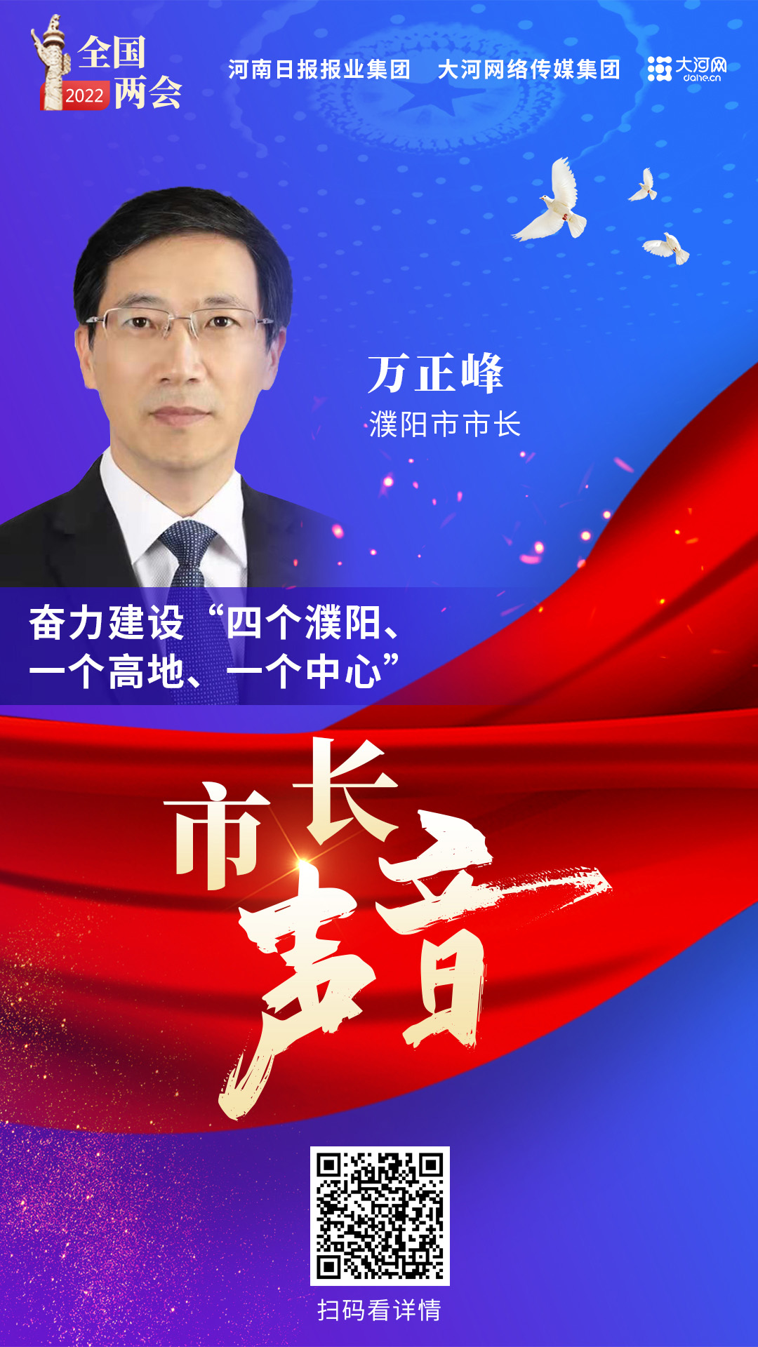 2022年是黨的二十大召開之年,也是“十四五”承上啟下的關鍵一年。萬正峰表示,在新的一年,濮陽市將錨定“兩個確保”,實施“十大戰略”,以“工業項目攻堅年、招商引資突破年、能力作風建設年”為抓手,突出資源枯竭城市全面轉型高質量發展主題,加快建設富強濮陽、生態濮陽、創新濮陽、幸福濮陽,加快打造中部地區創新開放高地、豫魯冀省際區域中心,以優異成績迎接黨的二十大勝利召開。