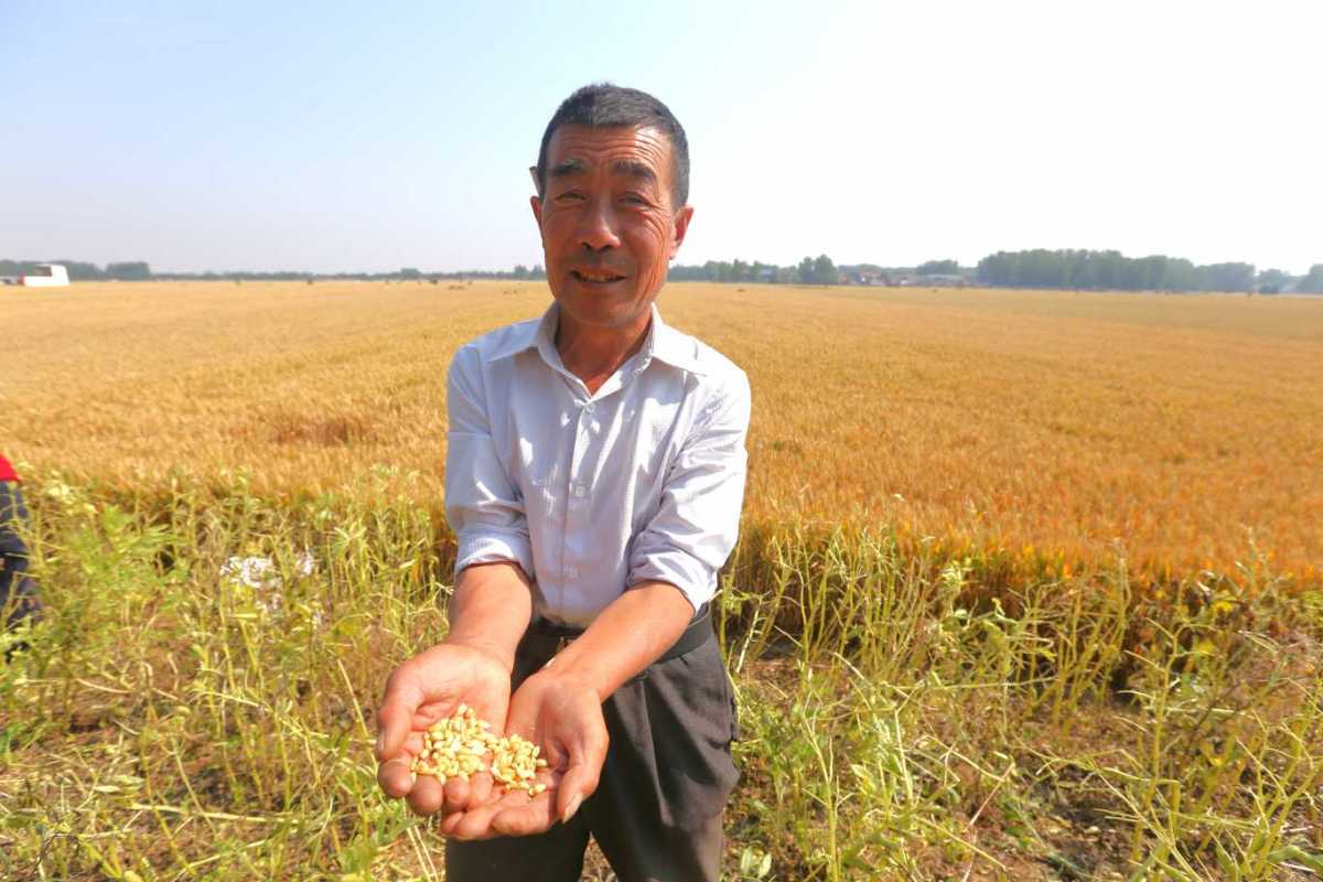 56歲的商水縣化河鄉化莊村農民化澇,今年種了2.7畝小麥。5月21日上午,大河報•豫視頻記者見到他時,他正在地頭忙活。只見他揉開兩個麥穗,輕輕吹去麥糠,豐腴飽滿的麥粒頓時呈現在眼前。老化開心地說:“雖然今年天氣相對有些干旱,但是灌溉及時,初步估計畝產至少千斤以上,收成還是不錯的。”