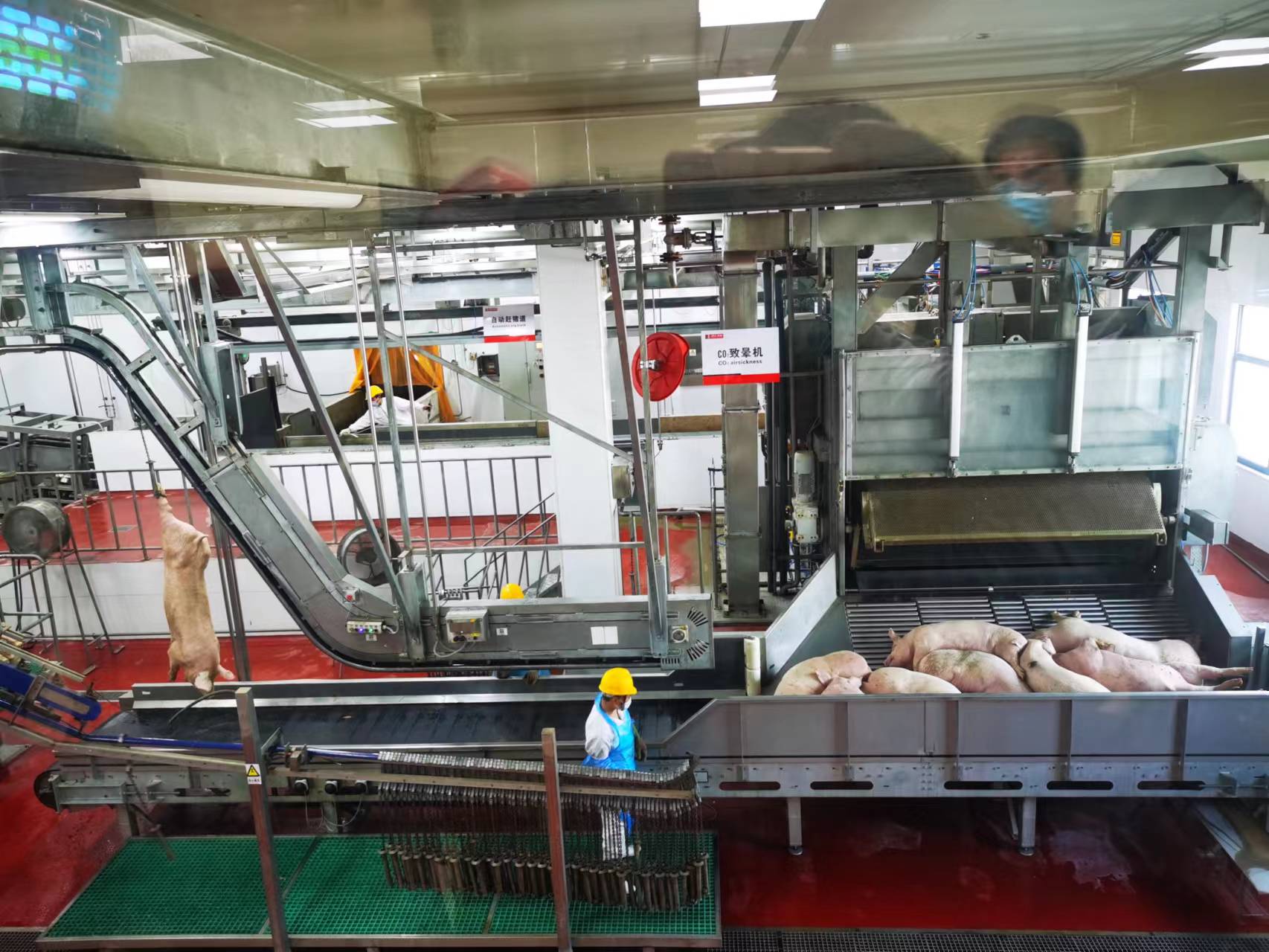 在雙匯屠宰分割車(chē)間,自動(dòng)致暈機(jī)、自動(dòng)開(kāi)胸機(jī)等自動(dòng)化、智能化設(shè)備有序運(yùn)轉(zhuǎn),一頭生豬被分割成200多種產(chǎn)品。肉制品加工生產(chǎn)線(xiàn)上,滾揉制餡、灌裝、高溫殺菌、烘干、包裝等生產(chǎn)工序都實(shí)現(xiàn)了自動(dòng)化、智能化。