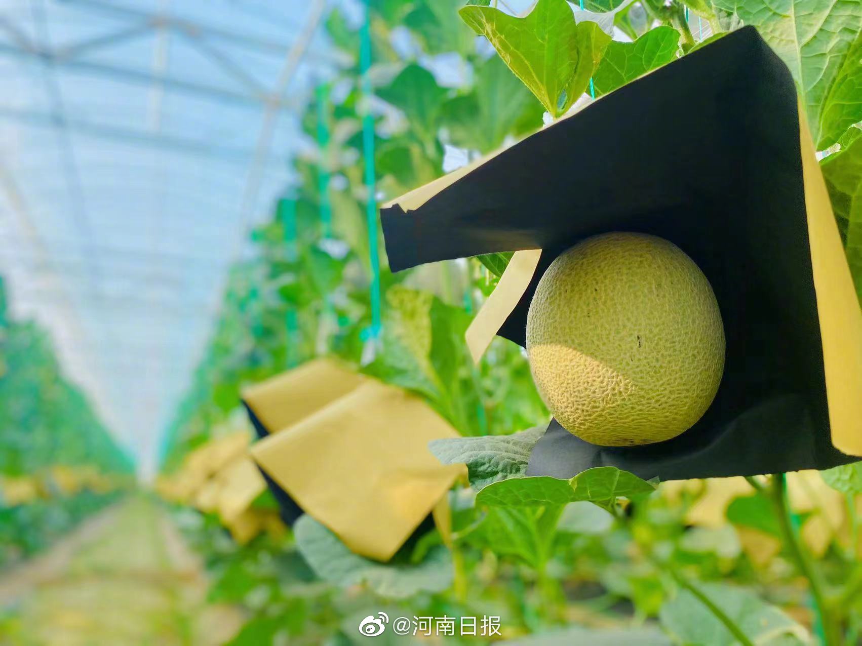 還有一周就將成熟的蜜瓜,一根秧上只長一個瓜,果實被紙袋包裹精心呵護。6月24日,在商丘市睢縣周堂鎮黃堂村的云瓜園種植基地,記者看到了這樣一幕。