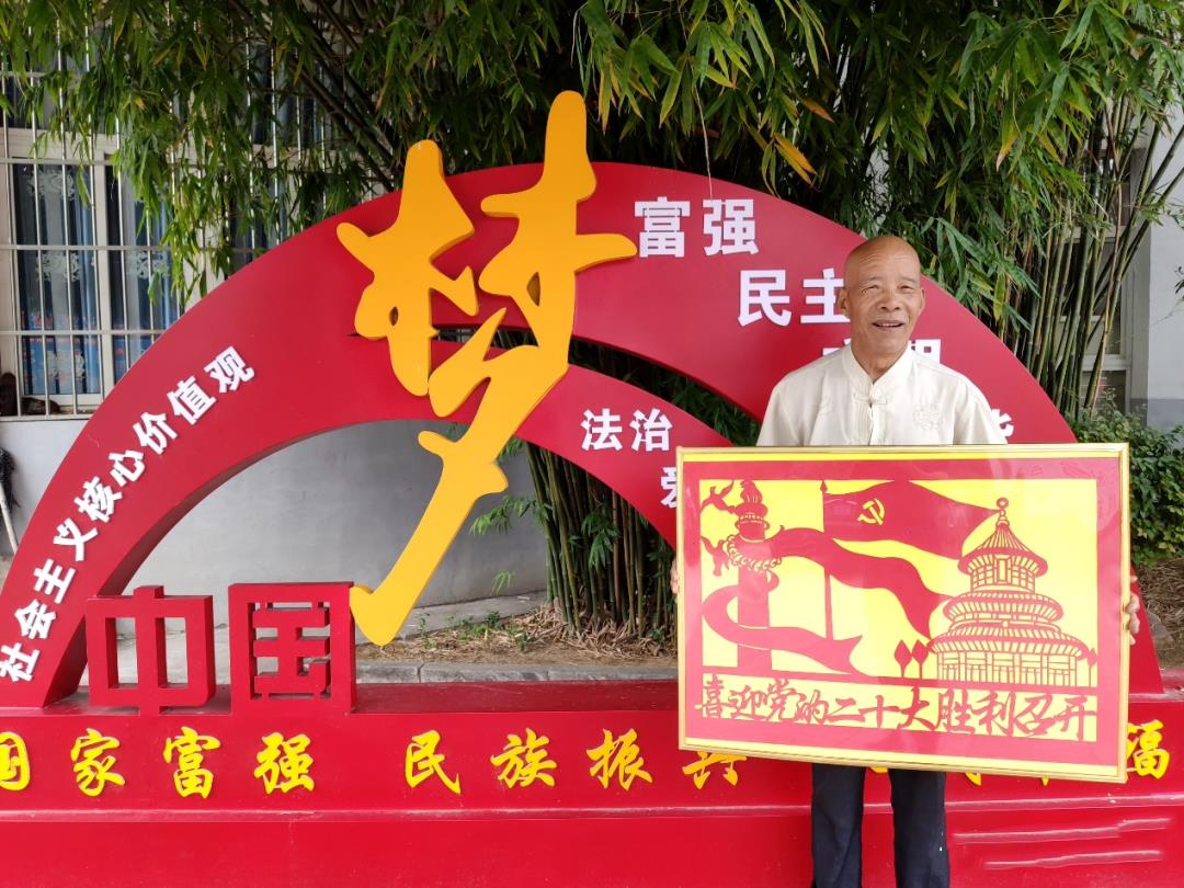 大河網訊 近日,為了迎接黨的二十大勝利召開,淅川縣上集鎮梁洼村73歲農民張雙成利用農閑時間創作剪紙作品。一張薄薄的剪紙,一份濃濃的情懷,將老百姓對黨的信念和感恩融入到剪紙作品中,表達了對中國共產黨的無限熱愛和對祖國繁榮富強的美好祝福。(李雪山 賈宏斌/文圖)
