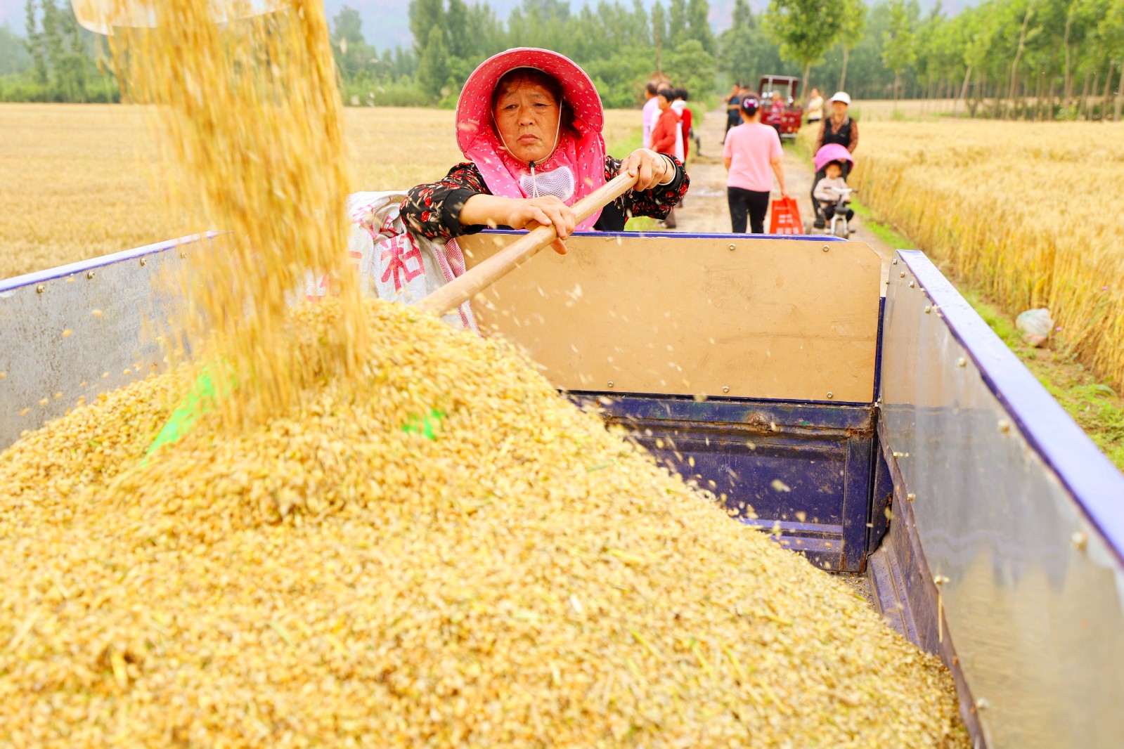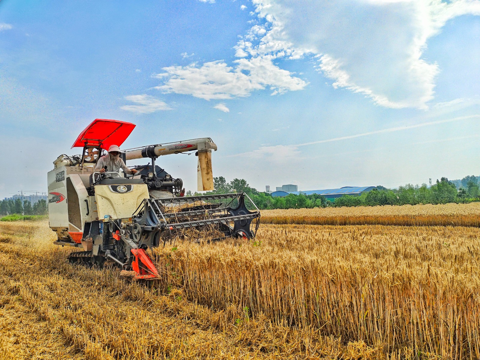 5月30日,在河南省南陽(yáng)市鎮(zhèn)平縣,小麥陸續(xù)成熟收獲。該縣今年種植小麥82萬(wàn)畝,目前北部山區(qū)及丘陵地帶已陸續(xù)成熟并收獲20萬(wàn)畝,南部小麥主產(chǎn)區(qū)也日漸成熟。時(shí)君洋 攝