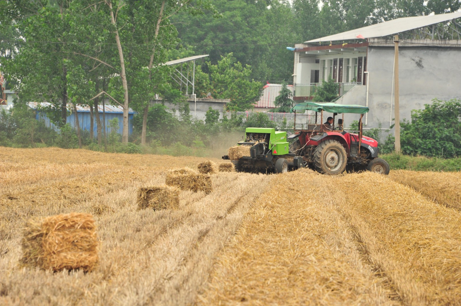 5月31日,在南陽(yáng)市社旗縣陌陂鎮(zhèn),打捆機(jī)在田間作業(yè)。武亞?wèn)| 攝