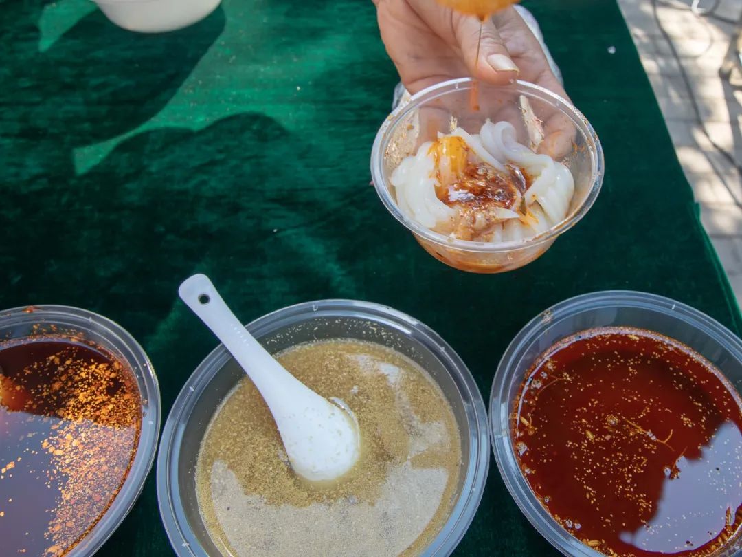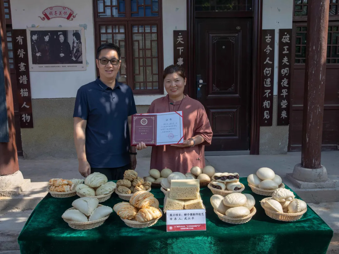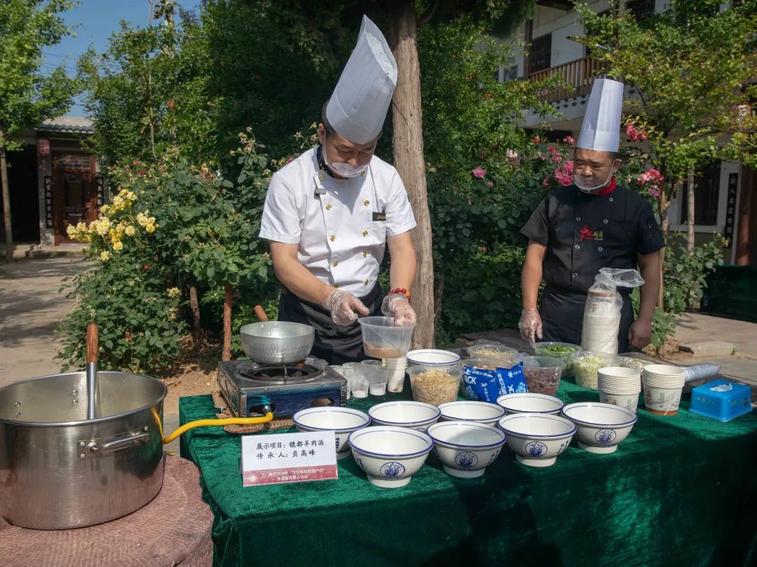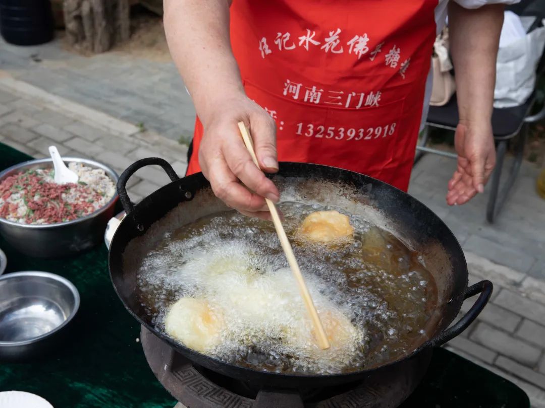 活動(dòng)現(xiàn)場(chǎng),15個(gè)非遺項(xiàng)目及傳承人齊聚一堂,親手展示他們的傳統(tǒng)手工藝,包括大營(yíng)麻花、漿面條、黑水變蛋、靈寶肉夾饃、佛手糖糕等。