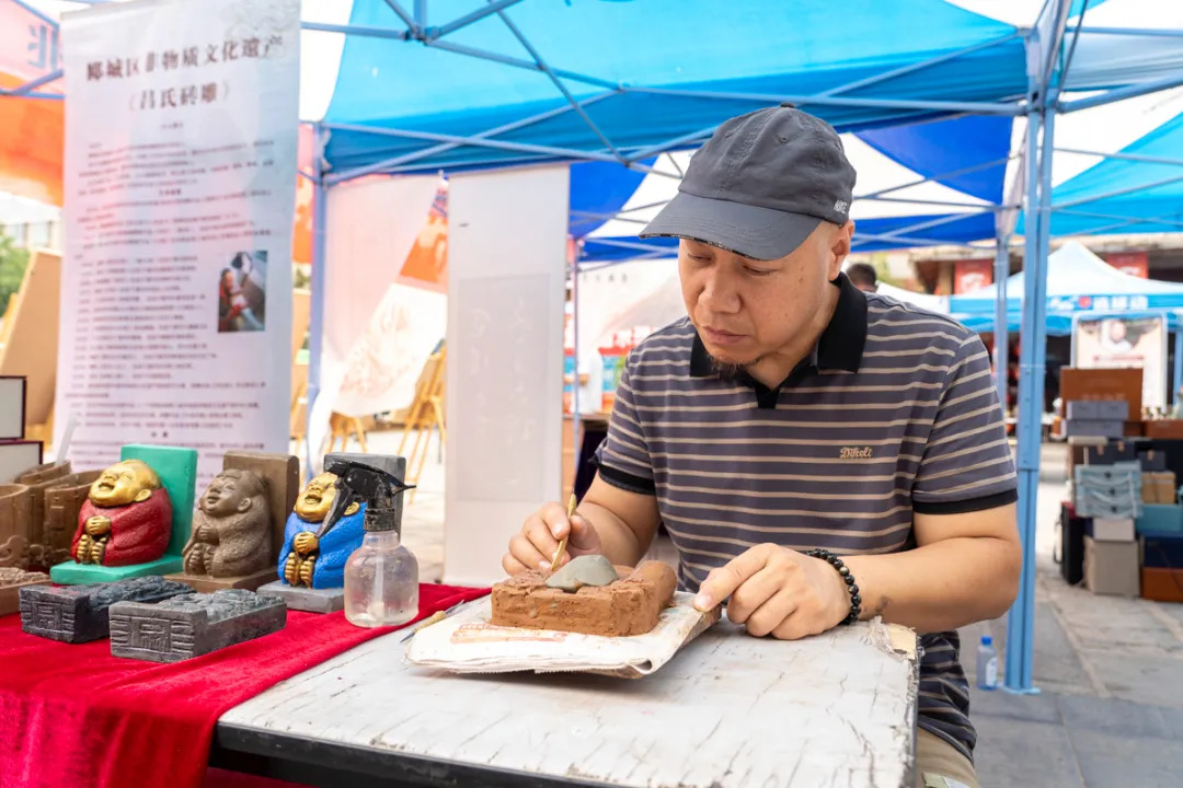 與此同時,在受降亭廣場還舉辦了2024年“漯河非遺購物節”。通過現場品鑒、展示展覽、直播帶貨等方式,集中開展非遺產品線上、線下銷售推介活動。老婆燒雞、好運香珠、健身龍、說文解字古香制作技藝、王一刀木雕、劉氏面塑、召陵剪紙、王氏老刀修面、趙氏面塑、時氏古典家具制作技藝、北舞渡胡辣湯、王氏面癱透寶丹等具有本地特色的非遺項目參加展示展銷。開展非遺產品體驗和展銷活動,幫助廣大非遺傳承人群獲得了更多經濟效益,也讓消費者在體驗、購買非遺產品中感受中華優秀傳統文化的獨特魅力。