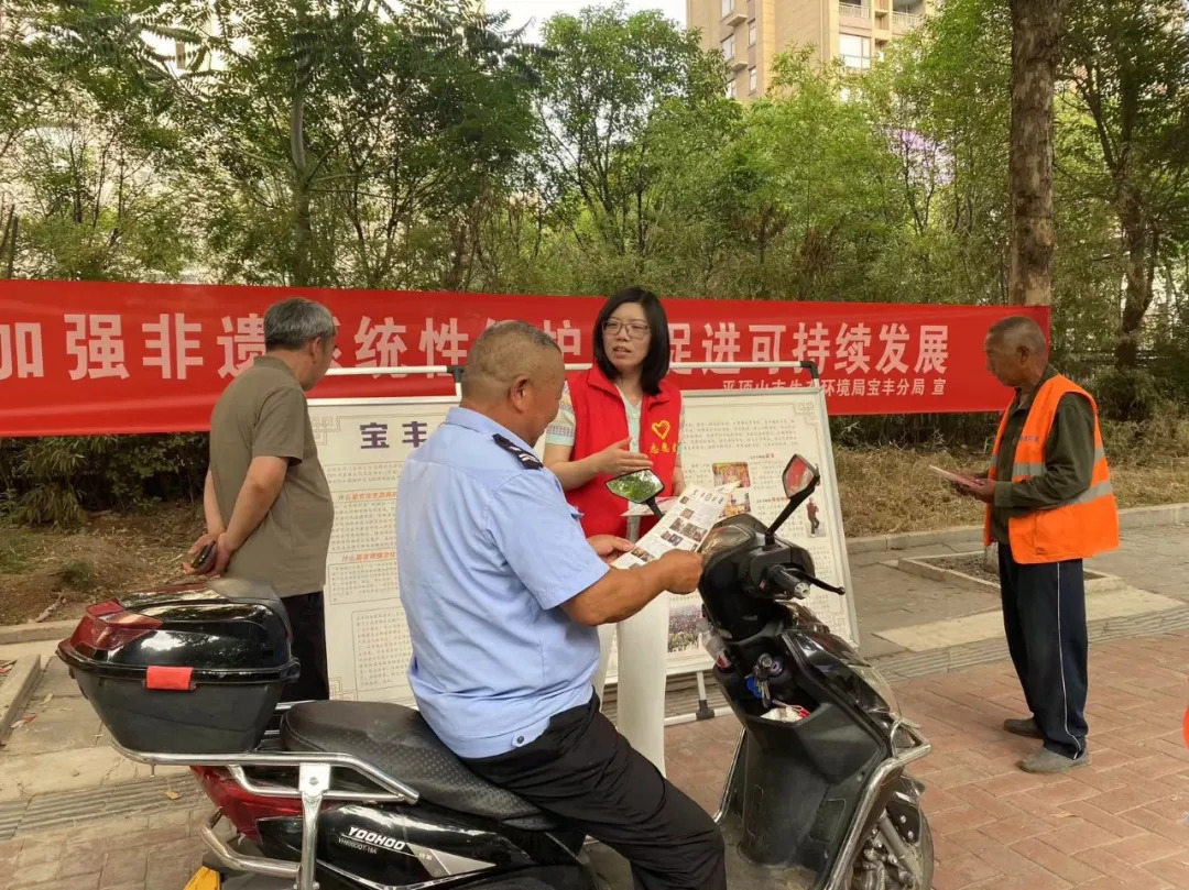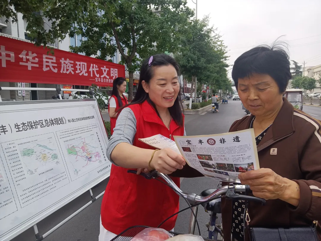 進入6月以來,寶豐縣各縣直單位、各鄉鎮通過組織展示展演、制作展板、懸掛橫幅、電子屏播放口號、發放宣傳頁等方式,持續開展“保護傳承非遺 賡續歷史文脈 譜寫時代華章——說唱寶豐·幸福家園”寶豐縣文化和自然遺產日系列活動。