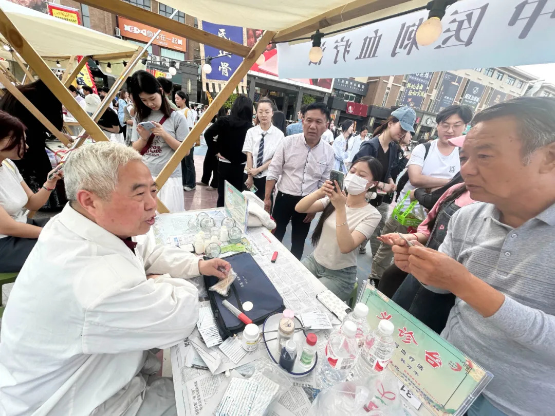 逛市集,暢享“歡樂周末 非遺市集”不僅是一場視覺與味覺的雙重盛宴,更是一次全方位、多維度的生活美學體驗。在這里,前來“趕集”的人們能慢下來、沉下去,盡情享受“非遺之樂”。在中醫義診咨詢區,傳統中醫藥類非遺項目傳承人現場坐診,提供把脈、針灸、推拿、按摩等服務,讓群眾親身體驗傳統醫藥技藝的獨特魅力。在互動體驗活動中,諸如拉洋片表演、剪紙面塑教學等,使得游客不僅能欣賞非遺,還能親自參與其中,動手創作,深度體驗非遺技藝的樂趣。“非遺市集創新了夜間文旅經濟新業態、新模式,推動開封文旅品質提升,釋放消費活力,已經成為開封夜間消費一大亮點。”開封市文化廣電和旅游局副局長李金國說,“傳統文化的好東西,決不能孤芳自賞,而要創新方式進行‘開封’!”