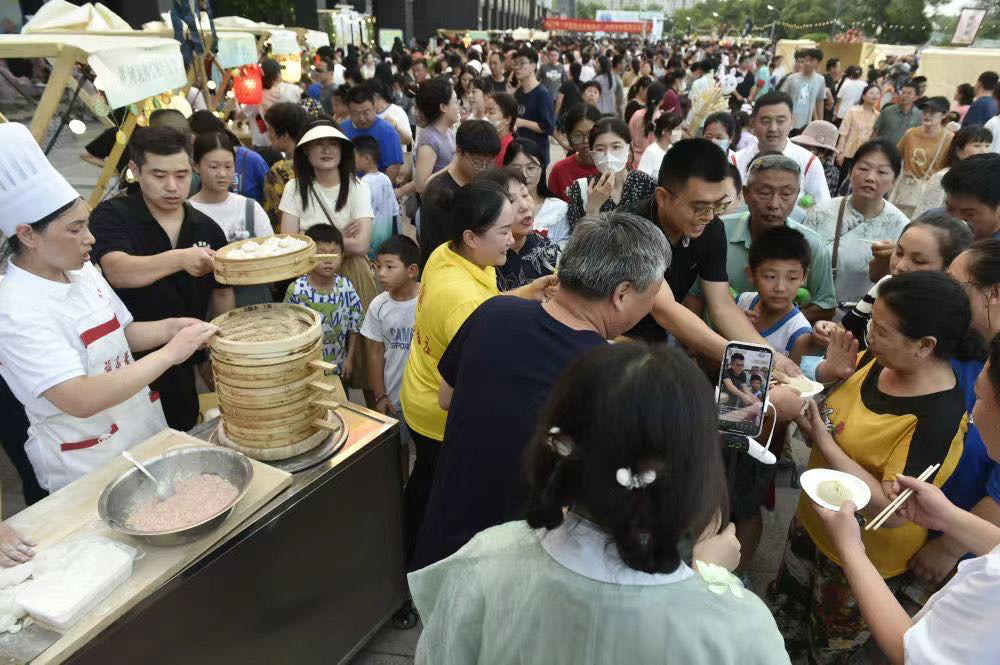 逛市集,細品“非遺之味”。在市集特設的產品展示展銷區,匯聚了全市百家極具地方特色的非遺美食及衍生產品。非遺美食免費品嘗區人氣爆棚,開封灌湯包、鯉魚焙面、桶子雞、花生糕等地道小吃,色香味俱全,引得食客們紛紛駐足。此外,活動現場還展示了琳瑯滿目的非遺衍生食品與文創產品,如帶有開封朱仙鎮木版年畫包裝的特色糕點、汴繡工藝制作的茶具等,讓“非遺之味”在傳承中創新,在創新中延續。