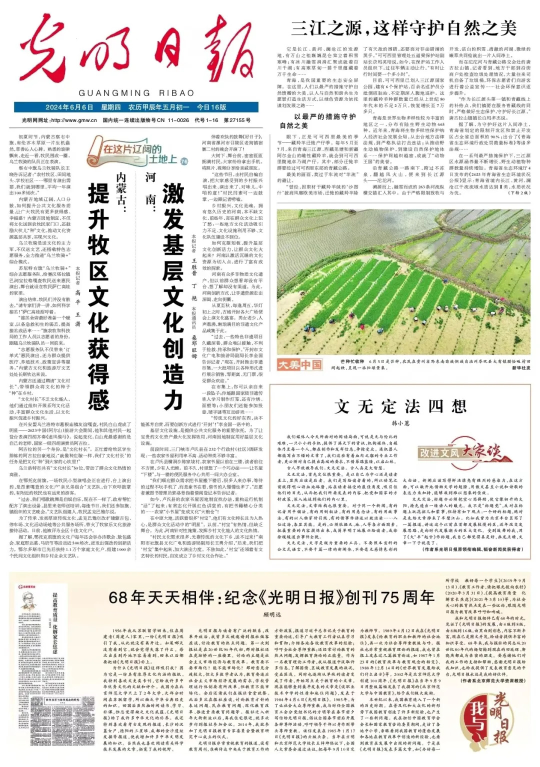 光明日報頭版: 《河南:激發基層文化創造力》,為了讓寶貴的文化資產最大化發揮效用,河南因地制宜用好基層文化設施。開封推出非遺市集,一大批項目以各種形式進行展示銷售,零距離、無門票,很受群眾歡迎。