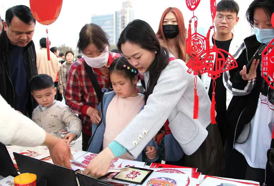 在市集上,你可以親自來一段墜子;你能跟國家級非遺傳承人學習制作燈籠,還有汴繡、面塑等;小朋友們還能參加投壺、猜字謎等互動游戲……漫步于河南開封的非遺市集,可感受到別樣的生活味兒。