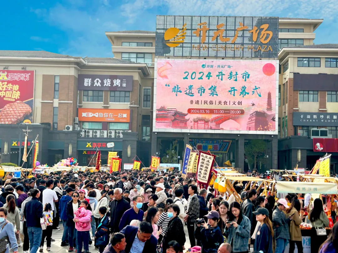 2024年開封市“非遺市集”在開元廣場開幕,目前已成功舉辦14期,每期參與非遺代表性項目近百家,非遺代表性傳承人累計參與展示展演展銷1500多人次,吸引省內外游客和大學生約二十多萬人次參加,尤其是在省內高校掀起了愛非遺、學非遺的熱潮,大量大學生志愿者參與。此外通過“歡樂周末 非遺市集”,開封眾多非遺項目搭上“夜經濟”這班車,由“聽說過”變為“看得見、摸得著”,成為“夜經濟”的亮點和品牌。市民和游客徜徉在“非遺市集”,用視覺、聽覺、味覺立體化領略非遺的“吸引力”,體驗東京夢華市集的“煙火氣”。
