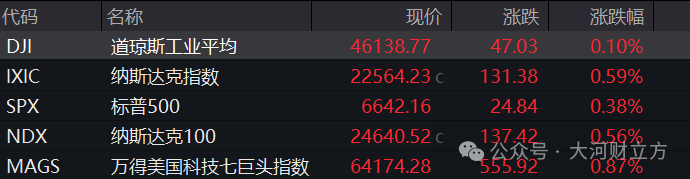 板塊方面,標普500指數十一大板塊六漲五跌。科技板塊和通信服務板塊分別以0.93%和0.72%的漲幅領漲,能源板塊和公用事業板塊分別以1.30%和0.81%的跌幅領跌。